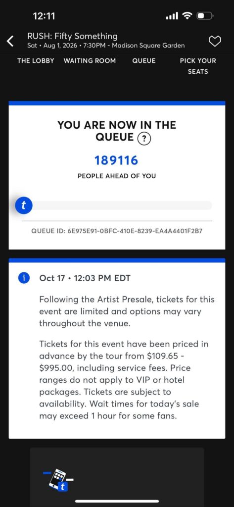 It’s a familiar story. Ticketmaster’s “dynamic pricing” model, inflated resale markets, and VIP add-ons have turned the simple act of buying a concert ticket into a financial endurance test. And for Rush, a band whose message often celebrated individualism and working-class grit, it’s especially dissonant.