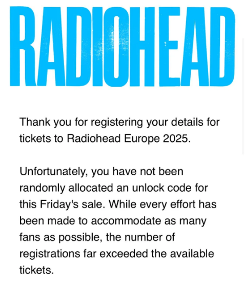 Tickets for Radiohead’s 2025 tour dates recently went on sale. However, ahead of the general sale on September 12th, fans were anxiously waiting to discover if they were among the lucky ones to receive a special “unlock code”.
